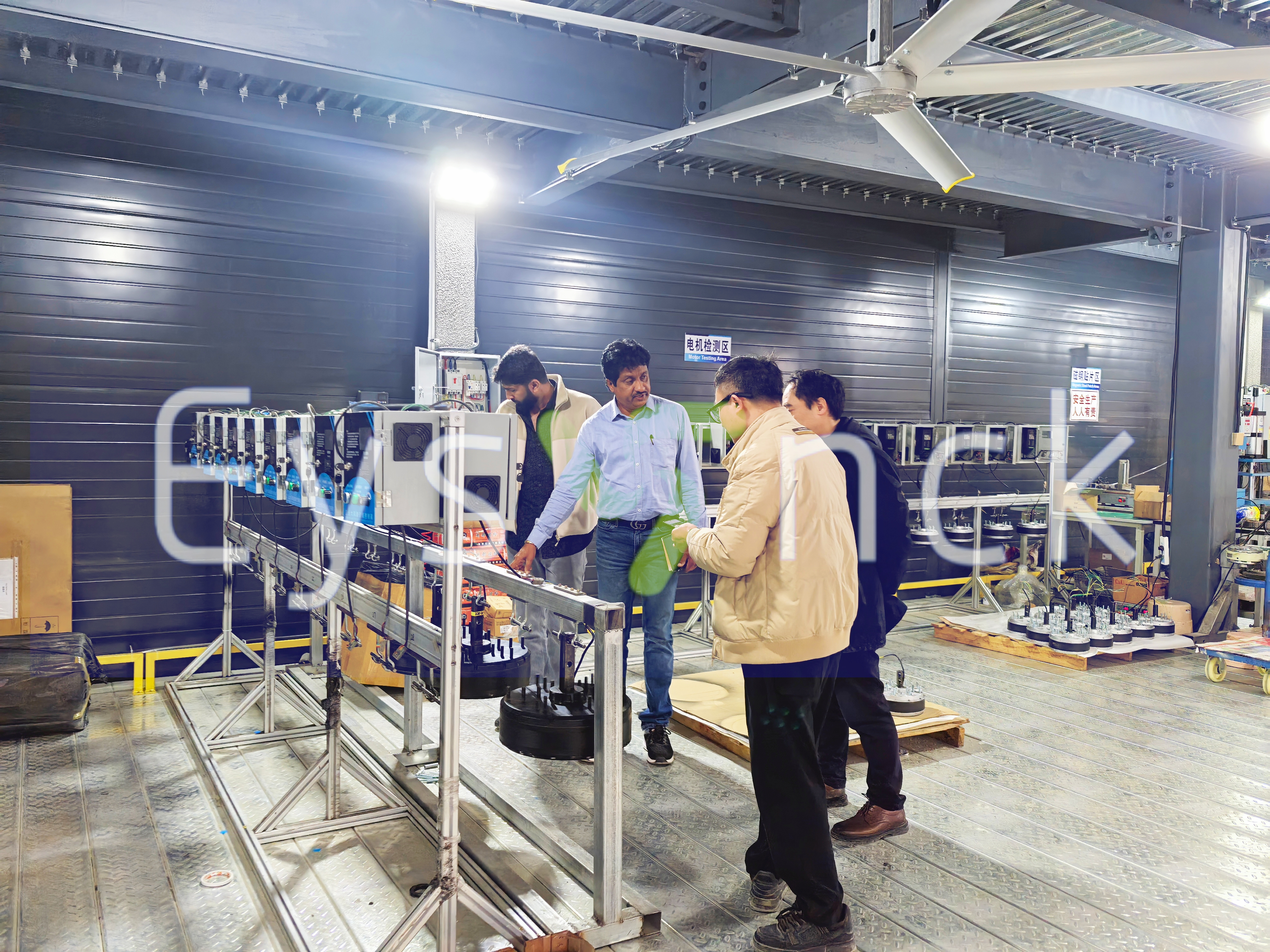 在全球贸易的广阔舞台上,Eysenck持续开拓进取,工业大吊扇外贸业务迎来又一重要里程碑。近日,公司成功开发新的印度客户,该客户于今日莅临我们工厂进行实地考察参观,为双方未来的深度合作奠定坚实基础。