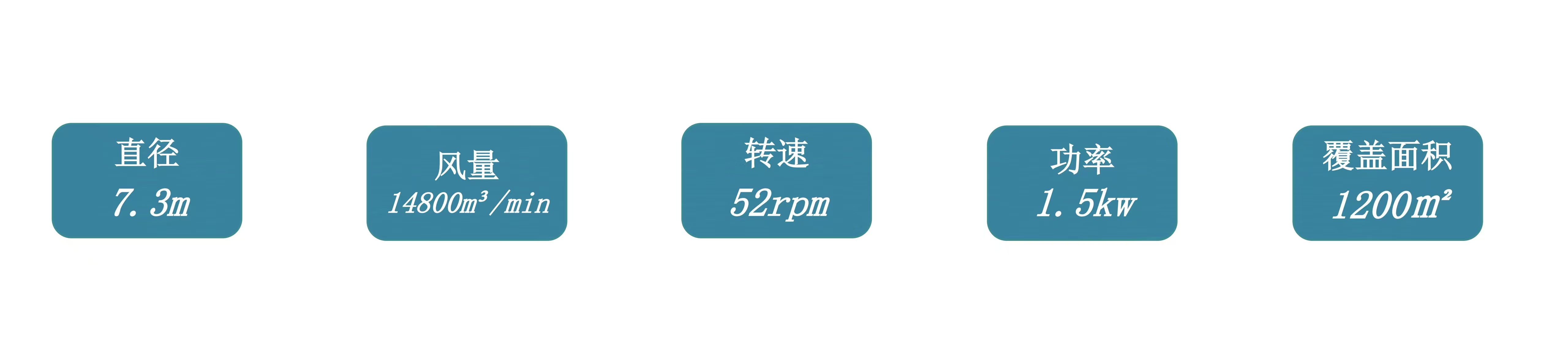 型号 | 直径(m) | 转速(rpm) | 国际规格(FT) | 重量(kg) | 功率(KW) | 风量(m?/min) | 噪音(db) | 扇叶数量 | 覆盖(㎡) |