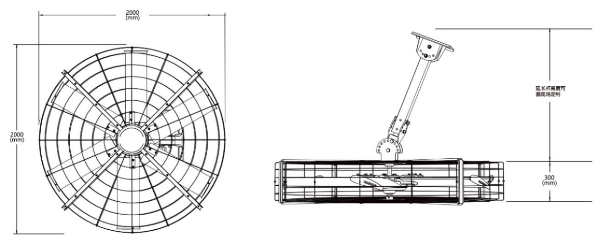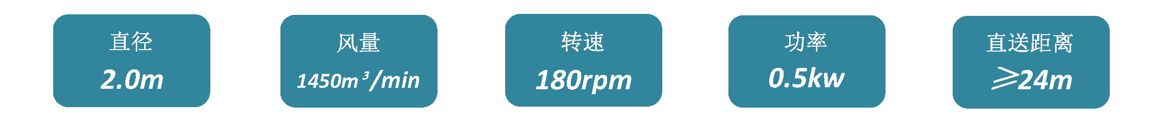 型号 | 直径(m) | 转速(rpm) | 国际规格(FT) | 重量(kg) | 功率(kw) | 风量(m?/min) | 扇叶数量 |
